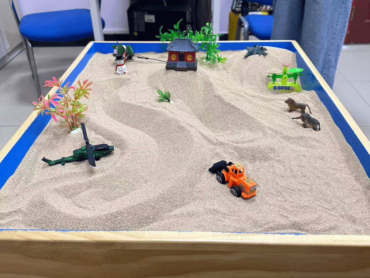 活动现场,没有授课、没有评判。一盘细沙,多种微缩模型,构成了一个包容、自由的“心天地”。参与者在专业老师的陪伴下,以沙为纸、以具为言,将难以诉说的压力、焦虑与困惑,转化为具象的沙盘场景。