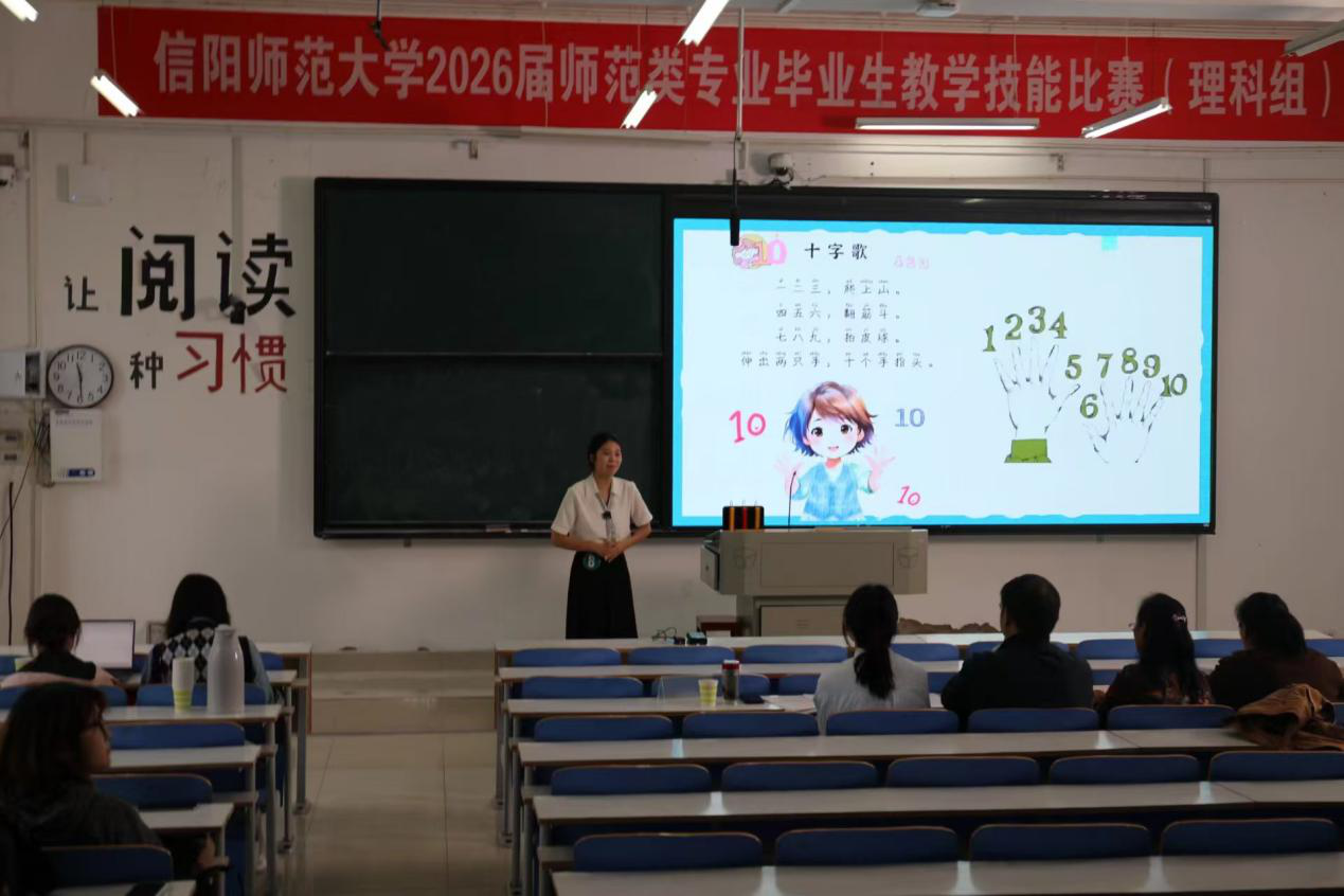 9月27日,学校在社科楼举办信阳师范大学2026届师范类专业毕业生教学技能比赛。我院2022级学生张小丫和杨丽莹代表学院参加此次比赛,2024级红色园丁实验班学生到场观摩,学习优秀学姐的教学经验,提升自身师范技能。