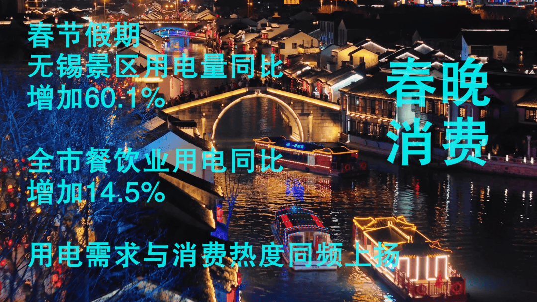 春节假期,无锡接待游客1556万人次,旅游收入159.78亿元。景区内灯光秀、非遗展演等夜间经济场景,推动用电负荷持续走高。无锡分会场主舞台所在的清名桥历史文化街区,春节假期游客总数达155.59万人次,部分商铺夜间用电量较平日增长超50%。