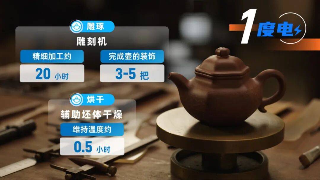 成品率从原来传统烧柴龙窑的85%,飙升至98%,每月综合成本降低20多万元。一只普通手工紫砂壶市场售价在300-500元,按1度电烧制5只壶、每壶最低价300元计算,1度电支撑创造的经济价值高达1500元。1度电,让传统非遗技艺悄然焕新。