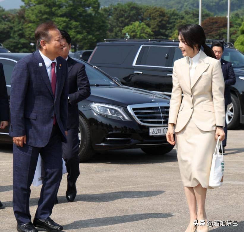 而“尹大统领”的媳妇儿金建希,每次出访都是一身高定收腰小西装,如果不是场景太过于严肃,根本看不来她是什么高贵身份的人,反而像是一个小公司的老板娘。