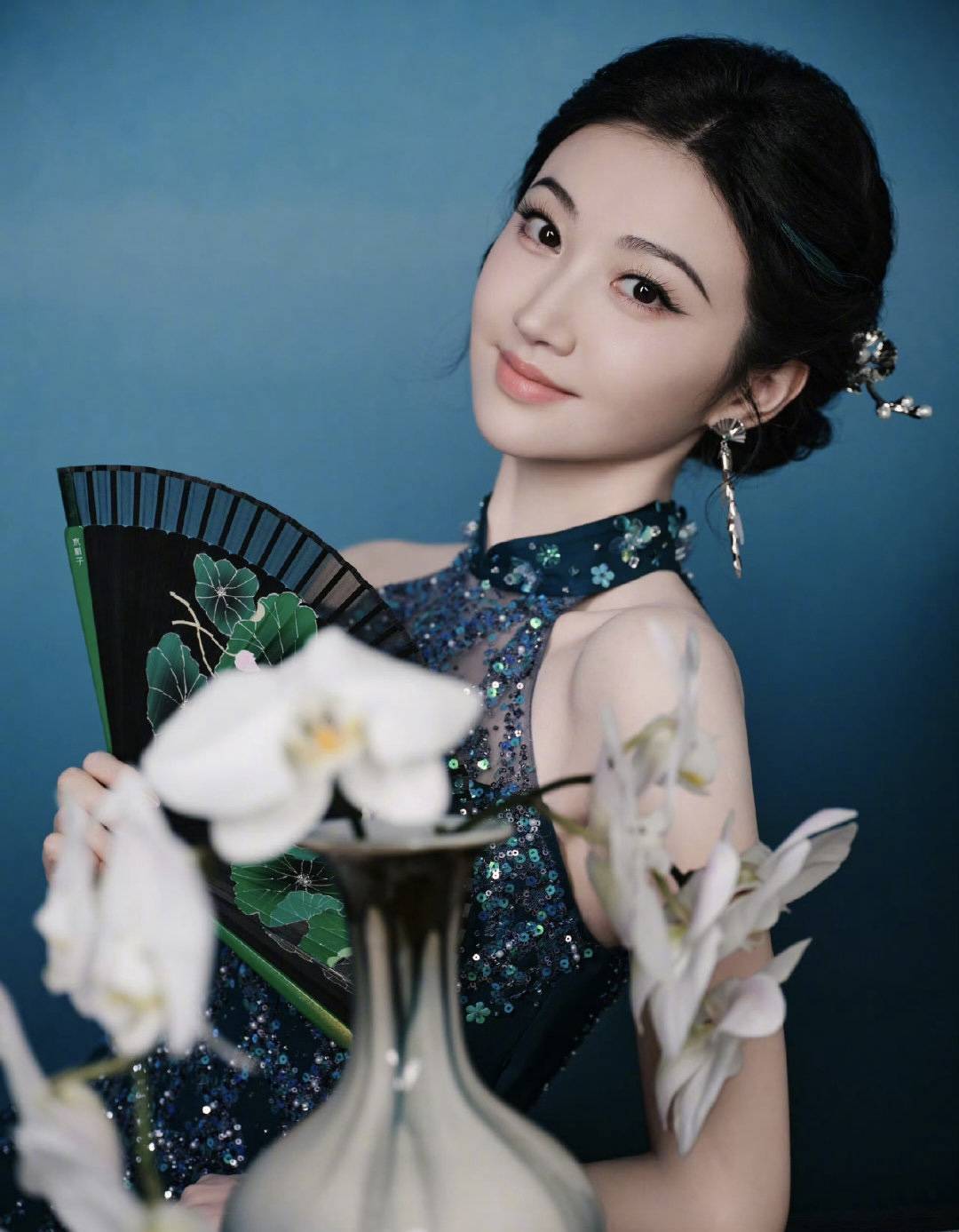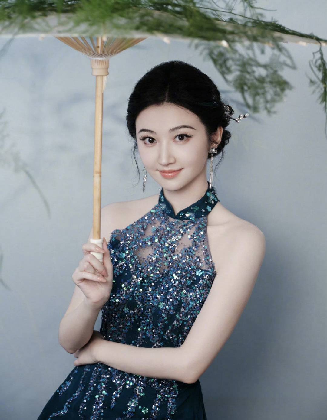 景甜将东方古典之美演绎到极致,清雅釉色如江南烟雨晕染,银线绣制的缠枝莲纹在光线下若隐若现。这一身“行走的文物级”造型,不仅让现场媒体镜头频频对焦,更让无数网友直呼“从古画中走出来的贵女”。